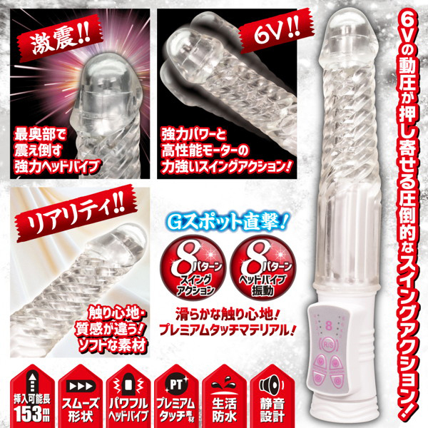 内蔵された高性能モーターが繰り出すハイパワー振動!8種類のスイングと振動パターンに加えて、刺激の変化をもたらすリバース機能で飽きの来ない多彩なアクションが楽しめる♪挿入可能長は153mm、滑らかで触り心地の良いプレミアムタッチ採用!最奥を徹底的に責め立てるストレートバイブ。