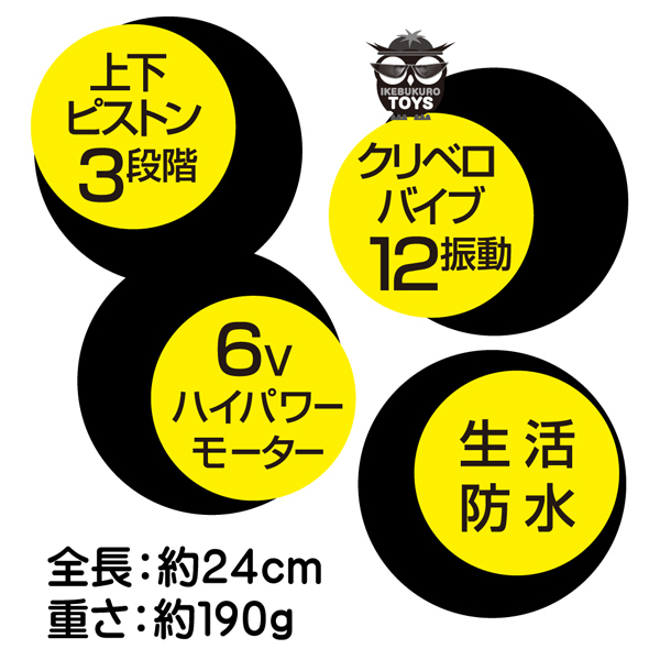 リアルでは体験できない3段階スピードでドコドコと激しく奥突き!さらに12種類の目にも止まらぬ高速クンニで追い打ちをかける♪単4電池を4本使用、ブラックカラー